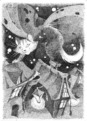 Ночной Кот всплеснул крыльями и, улыбнувшись огромному блюдцу сметаны на небесах, мягко опустился на покатую черепичную крышу.